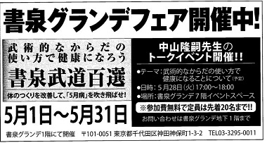 A talk between two people of Nakayama Shihan is published at the "Monthly HIDEN" known as a journal of an old style martial art. On the theme of KASSATSU, the report of a talk between two people will be published at the March issue and the April issue.